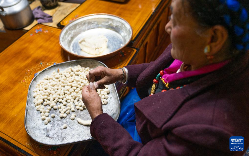 在日喀則市桑珠孜區(qū)洛瑪彩林社區(qū),59歲的巴桑普尺掌勺家里的“古突”宴。和面、揉面、煮面,火爐上一鍋牦牛肉湯熱氣騰騰。巴桑普尺高興地說:“今年是第一次在新房里過年,很開心。”