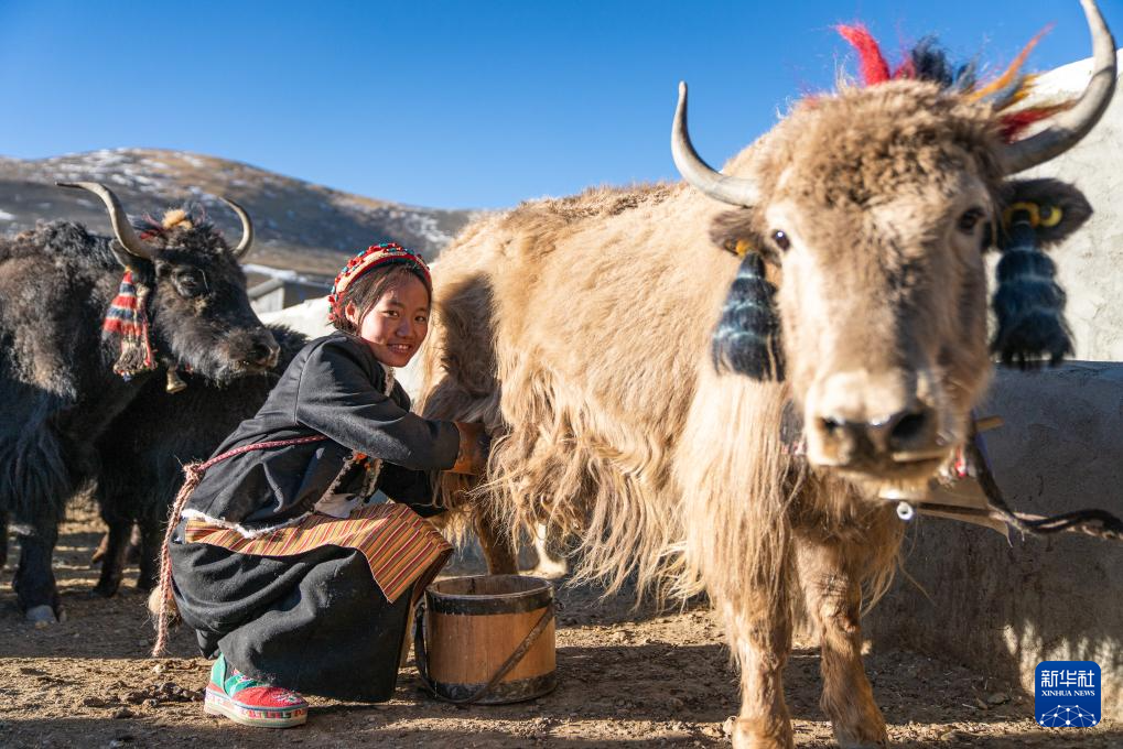 1月13日,時值西藏日喀則一帶傳統(tǒng)的農(nóng)家新年大年初二。坐落于群山間的日喀則市白朗縣東喜鄉(xiāng)思古龍村,延續(xù)傳統(tǒng)習(xí)俗,舉行擠牛奶、擲牛角等傳統(tǒng)文體比賽和翻桶接力賽等娛樂活動,以此慶祝新年。