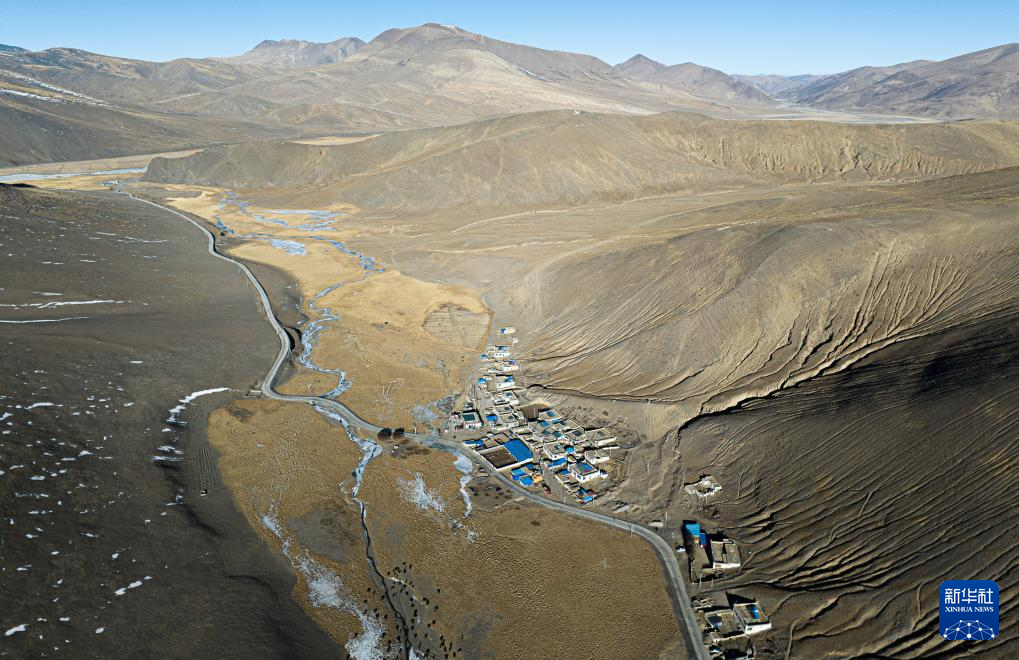 坐落于群山間的日喀則市白朗縣東喜鄉(xiāng)思古龍村(1月13日攝,無人機照片)。新華社發(fā)(丁增尼達 攝)