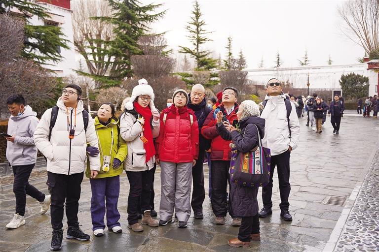 1月16日一大早,拉薩下起了2024年的第一場雪,雪中的布達(dá)拉宮有著別樣的美麗。王碧秀帶著幾位從上海來的游客參觀了這座擁有千年歷史的宮殿,細(xì)致的講解隨著雪花一起,將雪域高原厚重的歷史文化送進(jìn)了游客的心里,撒下了希望的種子。總有一天,這些種子會(huì)生根發(fā)芽,帶著王碧秀和無數(shù)導(dǎo)游們的期冀,開出絢麗的花朵,吸引更多人來到西藏、愛上西藏。