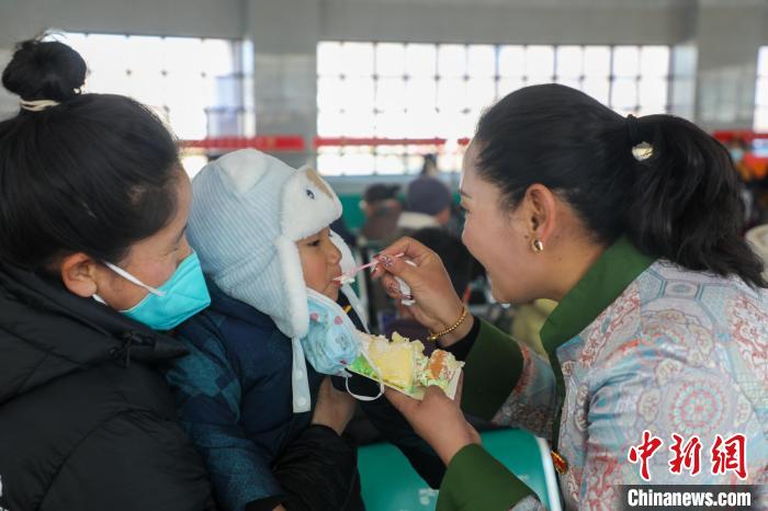 春運(yùn)首日,拉薩車務(wù)段在日喀則站候車大廳開展“溫馨出行 文明出行”主題活動(dòng),火車站青年職工帶來了日喀則當(dāng)?shù)靥厣顝棾?,并為旅客送上溫暖的甜茶,和旅客一起分享蛋糕慶祝日喀則站第十個(gè)春運(yùn)等活動(dòng),營造出喜迎新春的節(jié)日氛圍。