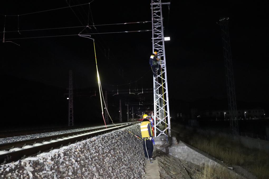 接觸網(wǎng)源源不斷地為電力火車提供電力,就像電氣化鐵路的“血管”?!拔覀兙褪歉咴姎饣F路的醫(yī)生,每天夜里,為它的‘血管’做一場細致的手術(shù),保證接觸網(wǎng)安全暢通?!崩罘e王說,細致的夜間作業(yè)確保了拉林鐵路在春運期間能夠安全、高效地運行。