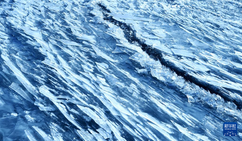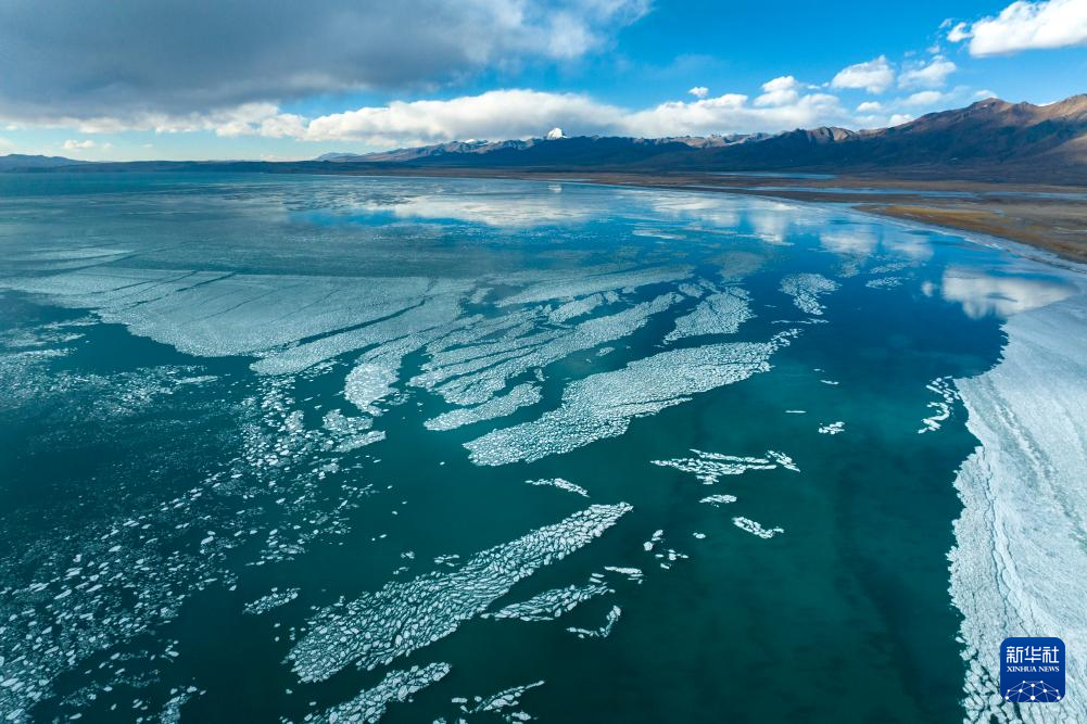 瑪旁雍錯湖面上的冰像碎玻璃一樣透亮(1月29日攝)。新華社記者 關(guān)明輝 攝