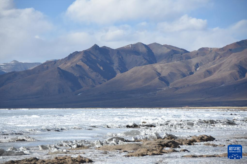 瑪旁雍錯湖面上的冰堆積在一起,形似波浪(1月29日攝)。新華社記者 關(guān)明輝 攝