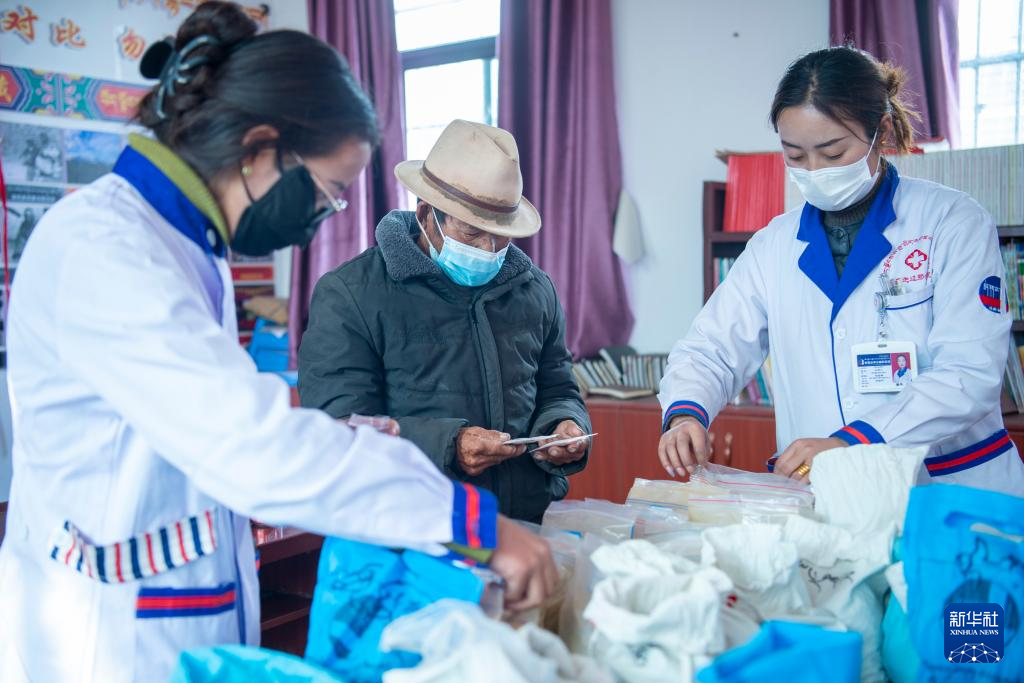 1月27日,拉布村村民在領(lǐng)取免費藥品。新華社記者 劉文博 攝