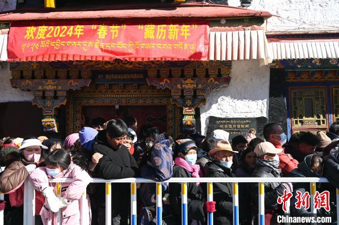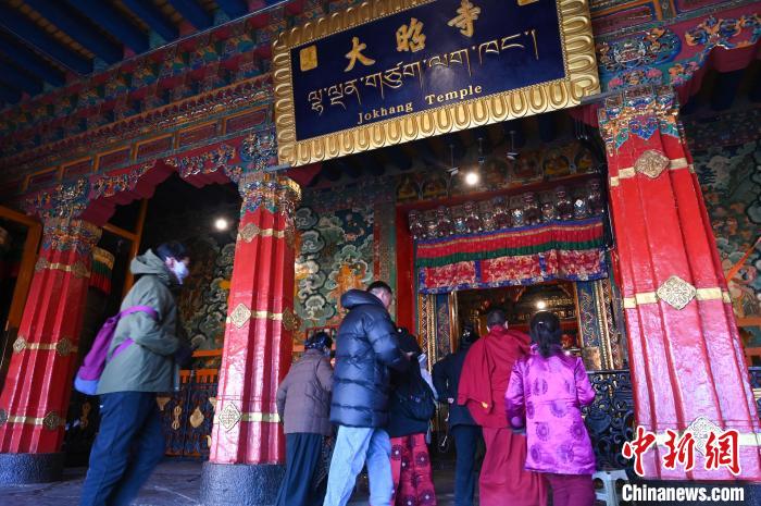圖為2月10日,信眾陸續(xù)進入大昭寺。中新社記者 趙朗 攝