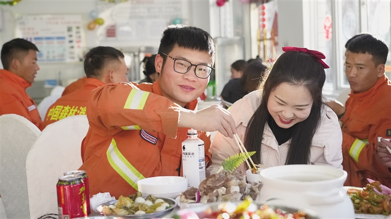 在大隊里,孫再藏與妻子一起包餃子、貼春聯(lián)、看春晚,和消防員們共同歡度佳節(jié)。除夕夜,孫再藏和妻子手挽著手,在操場上漫步。妻子抬頭看著丈夫,眼中充滿了驕傲和溫柔。她說:“你們過年還挺熱鬧的,好好站崗值班,家里不用擔心,有我呢?!?/p>