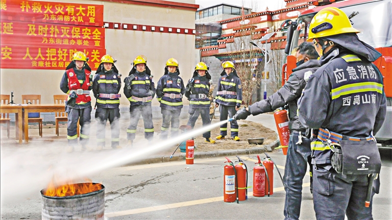 乃東區(qū)消防救援大隊來到乃東街道貢康社區(qū),組織駐村工作隊、網(wǎng)格員、群眾開展消防應(yīng)急演練,進(jìn)一步提升群眾火災(zāi)防范意識和應(yīng)急處置能力。圖為消防員正在指導(dǎo)群眾進(jìn)行滅火實(shí)操。