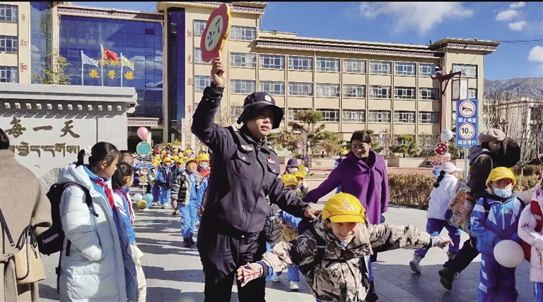 站在學校門口,等待孩子的家長央金感觸頗深,她告訴記者,每次開學前、開學時、開學后,都能看到民警們忙碌的身影。為學校家長提供幫助,為學生消除安全隱患,營造了安全、和諧、文明的校園環(huán)境,十分感謝他們。“今天報到啦,我們看到警察叔叔和阿姨就覺得很安心、很開心?!睂嶒炐W3年級10班學生白瑪娜薩說。