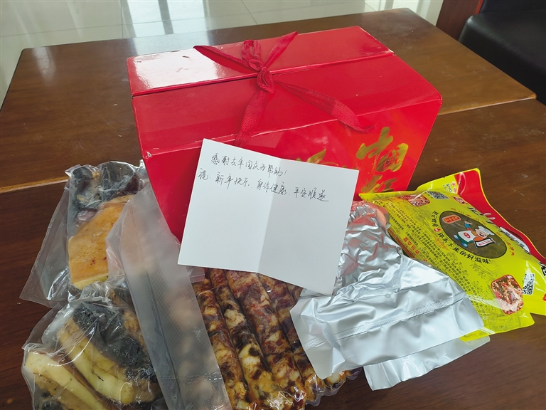 民警們熱心的幫助、暖心的話語,在曾先生心中留下了深刻的印象。雖然已經(jīng)過去了幾個(gè)月,但每每想起那次相遇,他的心頭總是涌起一股暖流。帶著這份感激和惦念,曾先生特意為孔瑪邊境派出所的民警們寄去了家鄉(xiāng)特產(chǎn)臘肉和香腸,還有一張寫滿祝福的卡片。
