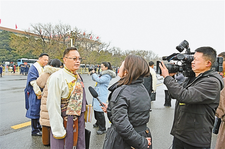 圖為全國(guó)人大代表羅慶伍接受媒體采訪(fǎng)。記者 旦增西旦 攝