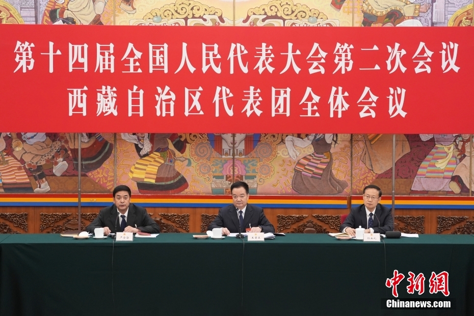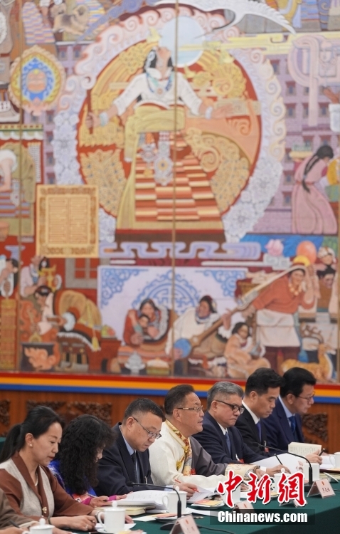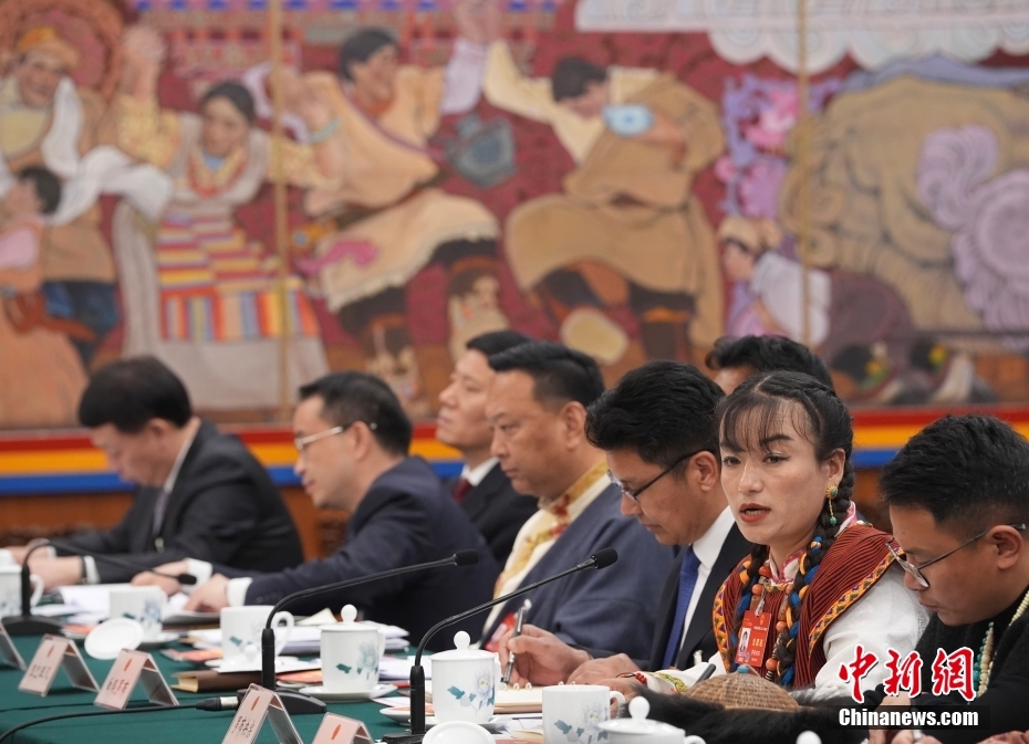 3月6日,出席十四屆全國(guó)人大二次會(huì)議的西藏代表團(tuán)在北京人民大會(huì)堂西藏廳舉行開放團(tuán)組會(huì)議,審議政府工作報(bào)告并回答記者提問。