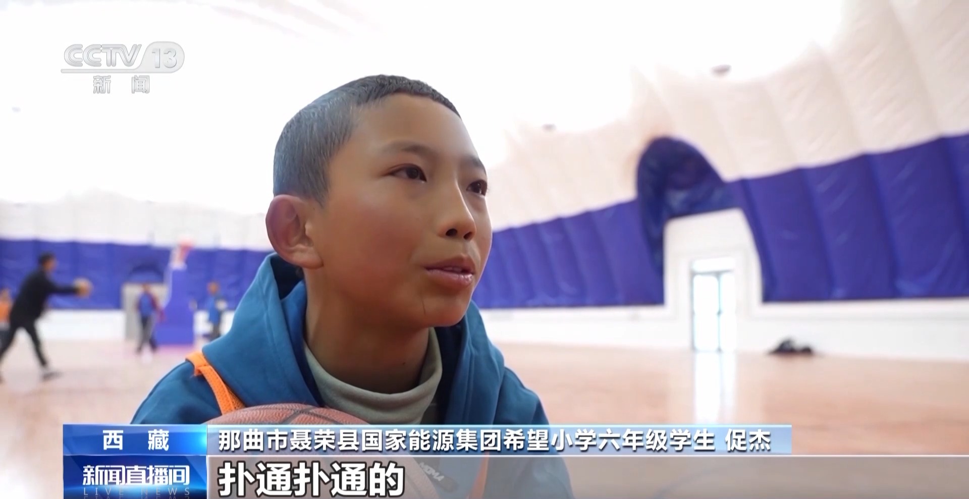 那曲市聶榮縣國(guó)家能源集團(tuán)希望小學(xué)六年級(jí)學(xué)生 促杰:我們這支籃球隊(duì)是我四年級(jí)時(shí)組織的,我今年快畢業(yè)了,希望能在市里面打一場(chǎng)比賽。