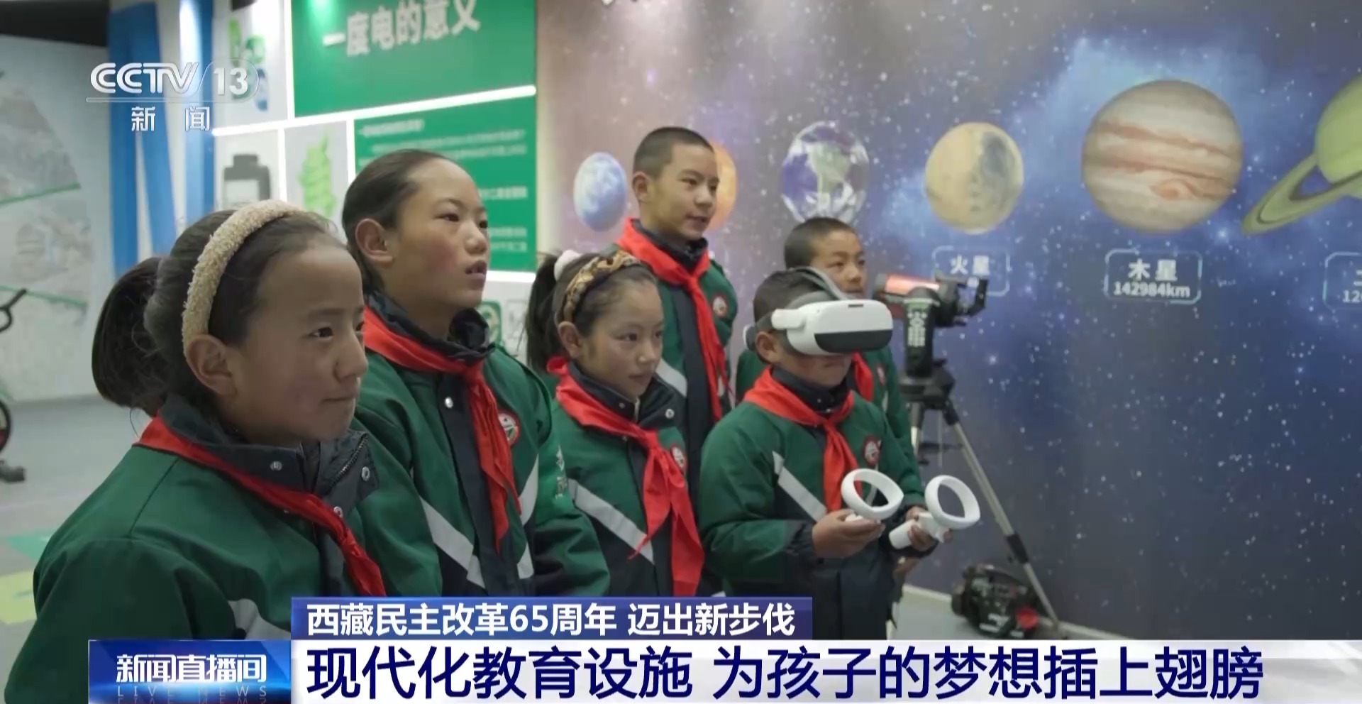 在援藏資金的幫助下,現(xiàn)在,學(xué)校不僅有現(xiàn)代化的氣膜球館,還有舞蹈房、鋼琴室、繪畫(huà)室、科技館等。在科技館,學(xué)生們可以通過(guò)VR體驗(yàn)了解航天、環(huán)保等知識(shí)。這些配備齊全的現(xiàn)代化教育設(shè)施,為藏北孩子們的夢(mèng)想插上了新的翅膀。