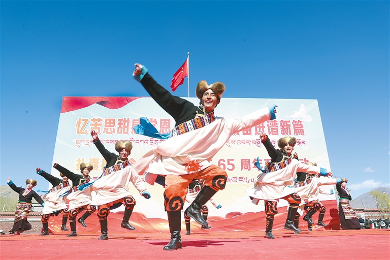 “這是一個(gè)非常值得紀(jì)念的日子,演職人員為我們帶來(lái)了精彩的節(jié)目,我們也感受到今天的美好生活來(lái)之不易,更加堅(jiān)定了我們聽(tīng)黨話、感黨恩、跟黨走的信心和決心?!笨ㄈ魠^(qū)通夏村村民頓珠拉姆激動(dòng)地說(shuō)。
