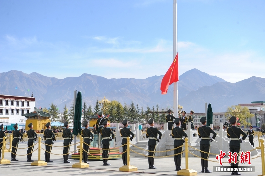 3月28日,西藏各族各界人士聚集在拉薩布達(dá)拉宮廣場(chǎng),升國(guó)旗、唱國(guó)歌,參加西藏百萬(wàn)農(nóng)奴解放65周年紀(jì)念活動(dòng)。圖為升國(guó)旗儀式現(xiàn)場(chǎng)。中新社記者 貢嘎來(lái)松 攝