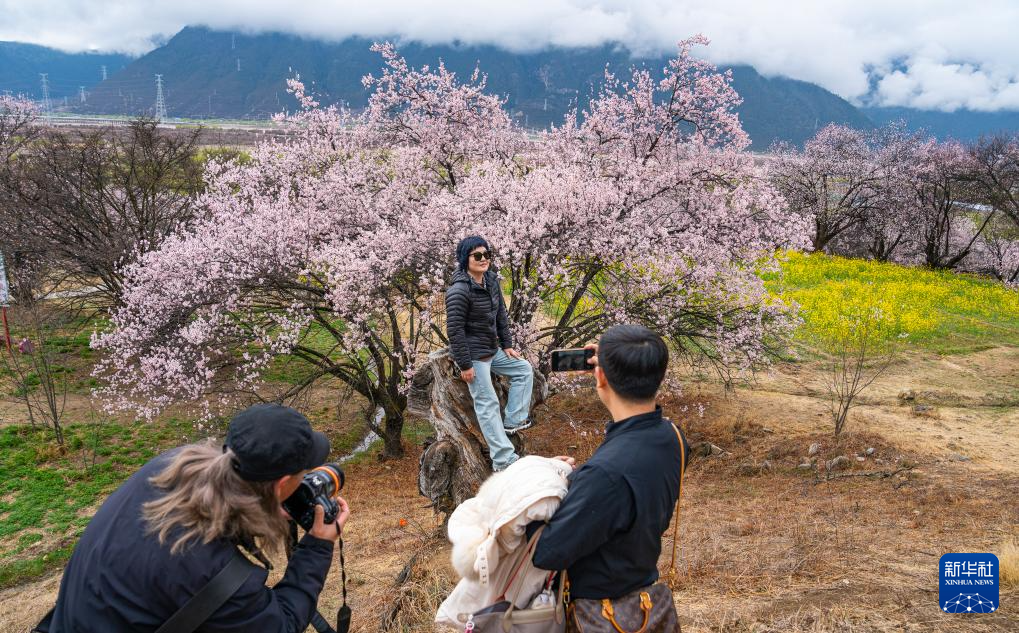 3月31日,游客在林芝市巴宜區(qū)嘎拉村拍照留念。新華社記者 孫非 攝
