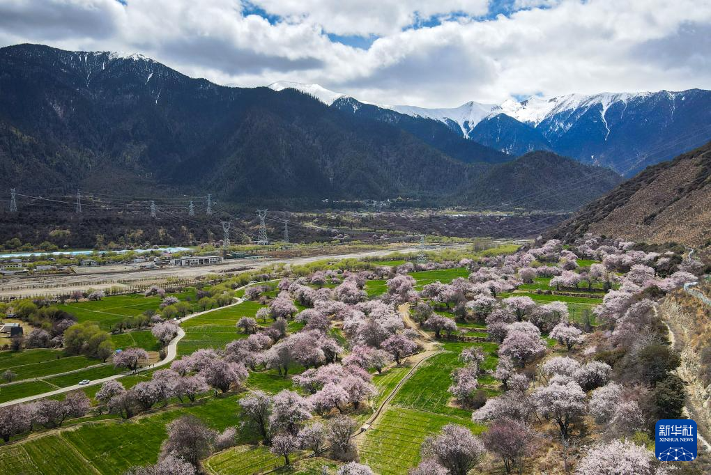 林芝市巴宜區(qū)朵當村盛開的桃花(3月30日攝,無人機照片)。新華社記者 丁增尼達 攝