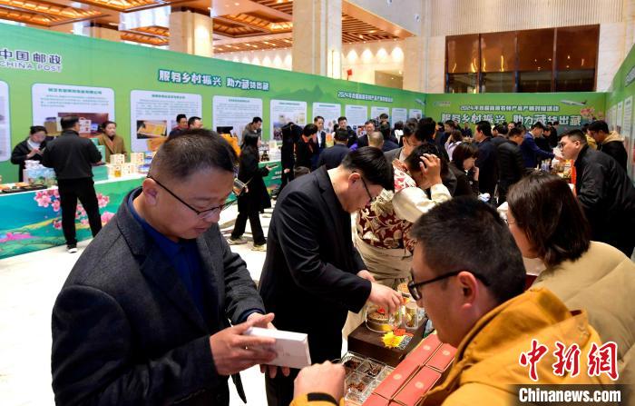 圖為高原農特產品產銷對接活動現(xiàn)場,各省郵政公司有關負責人與企業(yè)對接。李林 攝
