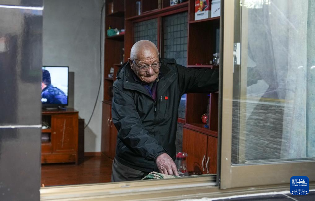 益西桑珠在家拉上窗簾準(zhǔn)備收看藏語電視節(jié)目(3月13日攝)。新華社記者 晉美多吉 攝