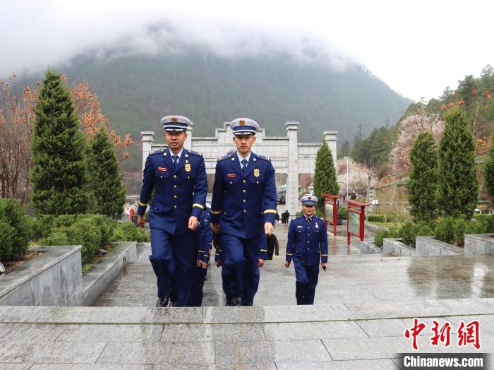 在察隅縣英雄坡紀(jì)念園革命烈士紀(jì)念碑前,消防救援人員面對鮮紅的黨旗莊嚴(yán)宣誓。隨后,大家來到烈士陵園,追憶先烈走過的光輝戰(zhàn)斗歷程,緬懷他們的豐功偉績。懷著對先烈的崇高敬意和沉痛哀思,隊員們?yōu)榱沂磕贡?、擦拭、脫帽默哀?/p>