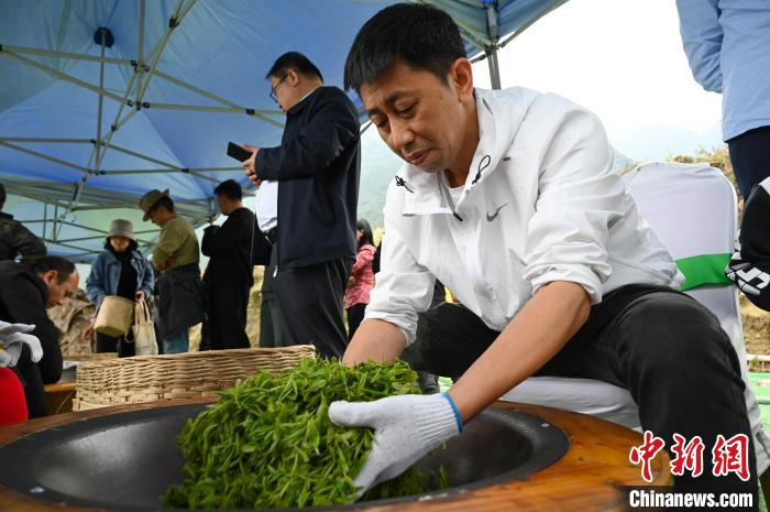 圖為制茶師將群眾體驗采摘而來的茶青炒成茶。趙朗 攝