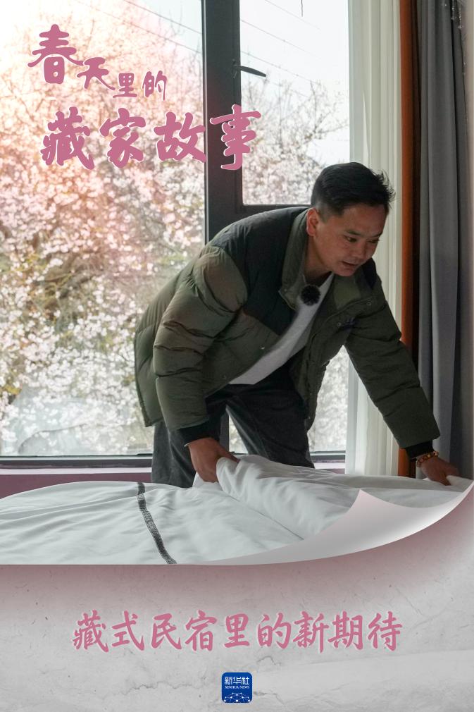 隨著波密桃花“走紅”,村里的桃花樹吸引了天南海北的游客?!坝慰驮絹碓蕉?,因?yàn)闆]地方住,很多人都擠在村民家里,于是我就萌生出了開民宿的想法。”洛松頓珠說。