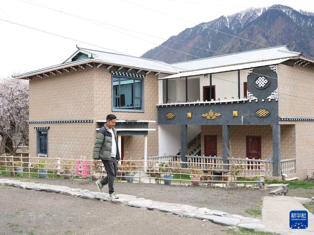 4月2日,洛松頓珠從自家民宿前經(jīng)過。新華社記者 丁汀 攝