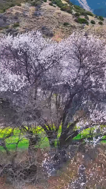 雪山之下、峽谷之間,成片的桃花林綿延至河谷山川,蔚然成粉海,游客紛紛聞香而來(lái)。