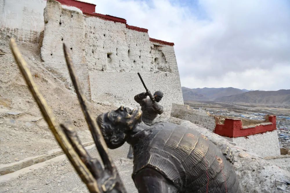 江孜宗山古堡上展現(xiàn)當年抗英戰(zhàn)斗的雕塑(晉美多吉 攝)