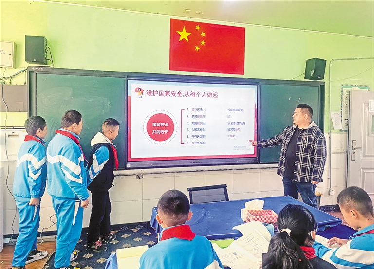 圖為在拉薩市第三小學(xué),老師向?qū)W生講解如何在日常生活中維護(hù)國(guó)家安全。胡舟 記者 次仁平措 攝
