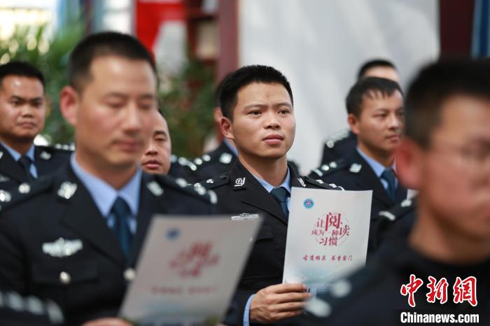圖為吉隆出入境邊防檢查站參與“古道雄關(guān) 書(shū)香國(guó)門”主題讀書(shū)分享會(huì)的移民管理警察正在認(rèn)真聆聽(tīng)。肖富貴 攝