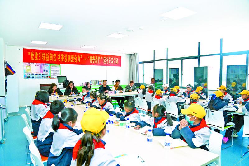圖為拉薩市墨竹工卡縣委宣傳部在該縣南京實(shí)驗(yàn)小學(xué)舉辦“黨建引領(lǐng)新閱讀 書香浸潤聚合力”——“書香墨竹”讀書分享活動(dòng)。記者 格桑倫珠 攝