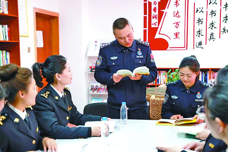 圖為亞東邊檢站和亞東海關(guān)聯(lián)合開展“書香邊境”主題讀書分享活動(dòng)。記者 王莉 通訊員 許鵬飛 李錦輝 攝