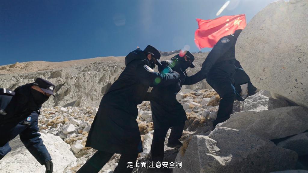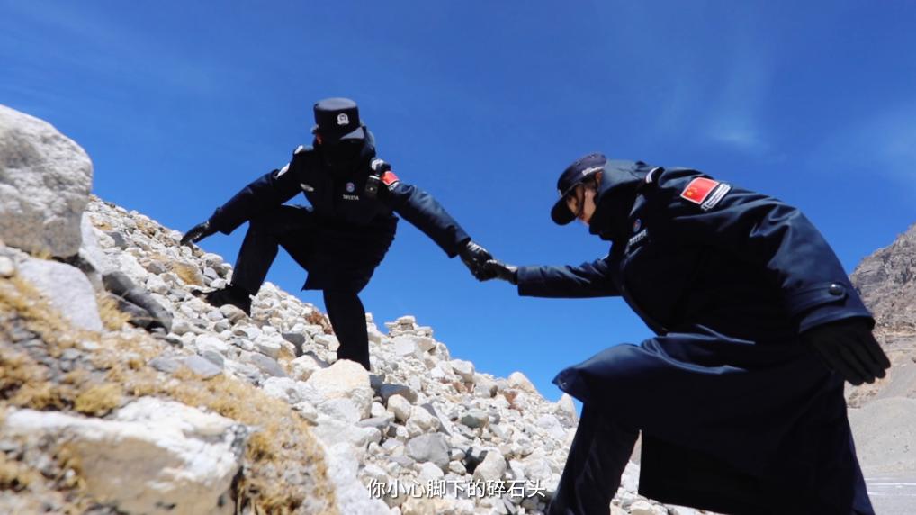 一路上,巡邏隊經過了冰塔林、冰川,穿越了碎石灘,“踏上路程的時候是有點緊張和忐忑的,因為感覺其實這路很爛,全是亂石堆,就很害怕自己沒辦法堅持下來,因為從來沒有到過海拔這么高的地方”,新警彭莉緊張地說道。