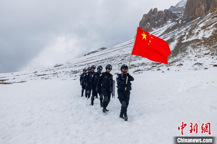 圖為貢當(dāng)邊境派出所民警正在進(jìn)行巡邏踏查。日喀則邊境管理支隊供圖