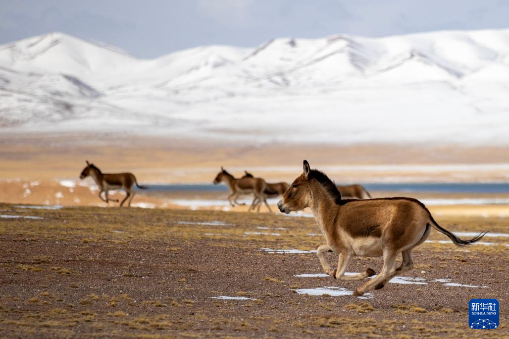 這是在西藏那曲市尼瑪縣境內(nèi)的羌塘國家級自然保護(hù)區(qū)核心區(qū)拍攝的藏野驢(5月9日攝)。新華社記者 丁增尼達(dá) 攝