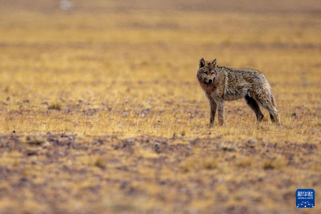 這是在西藏那曲市尼瑪縣境內(nèi)的羌塘國家級自然保護(hù)區(qū)核心區(qū)拍攝的狼(5月10日攝)。新華社記者 姜帆 攝