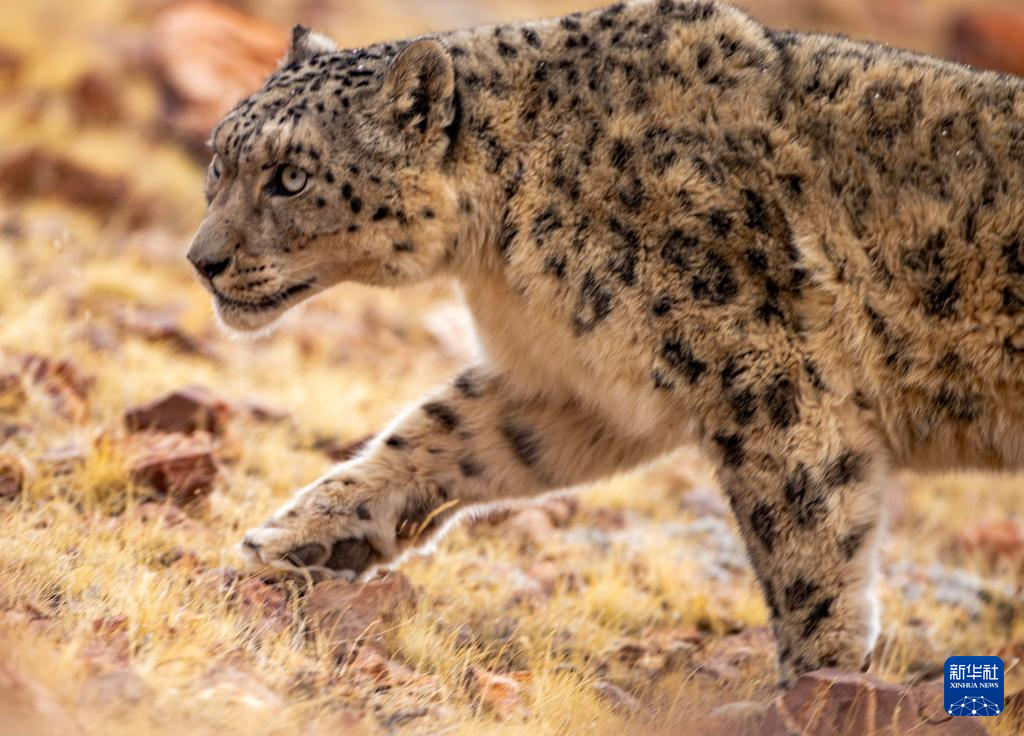 在西藏那曲市尼瑪縣境內(nèi)的羌塘國家級自然保護(hù)區(qū)核心區(qū),一只侵害牧民牲畜的雪豹被放歸自然(5月7日攝)。新華社記者 姜帆 攝