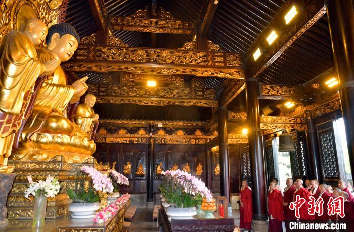參觀結(jié)束后,少年活佛們返回主殿,在釋迦牟尼佛像前敬獻哈達,同寬嚴(yán)法師一起誦經(jīng),共同祈愿國泰民安、世界和平。