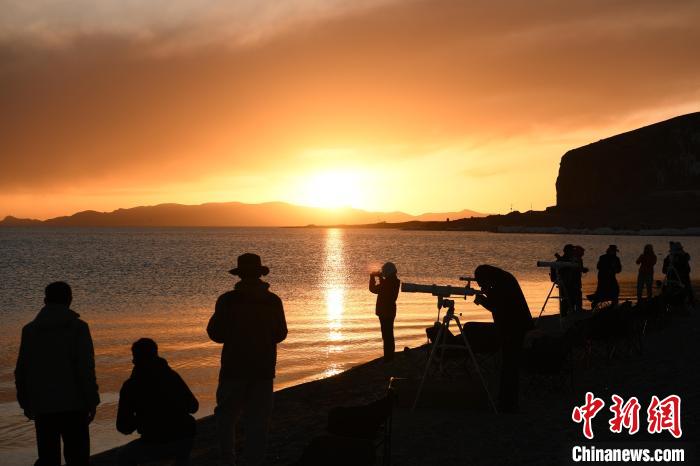 圖為游客在納木錯(cuò)湖畔觀賞晚霞。貢嘎來(lái)松攝