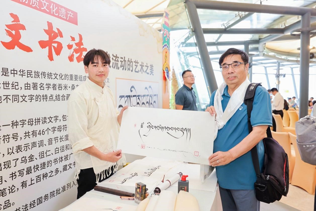 本次旅游推介會采用沉浸式體驗(yàn)的方式,以嘉賓分享、特色民俗歌舞表演和推介人娓娓道來的形式展開,輔以“林芝味道”的加持,將現(xiàn)場嘉賓沉浸式帶入濃厚的藏式風(fēng)情中,充分感受“人間凈地·醉美林芝”的獨(dú)特魅力。同時,“人間凈地 醉美林芝”風(fēng)景圖片展、“翰墨飄香”藏文書法展區(qū)、“林芝味道”品嘗區(qū)等特色體驗(yàn)區(qū)的布置,為推介會增添了濃厚的藏地風(fēng)情。
