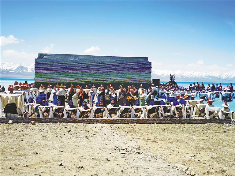 由300名演員將象征平安、吉祥的馬、牦牛、牛角、五彩哈達(dá)等元素融入表演全過程,藝術(shù)地展現(xiàn)獨(dú)有的開湖祈福場(chǎng)景。