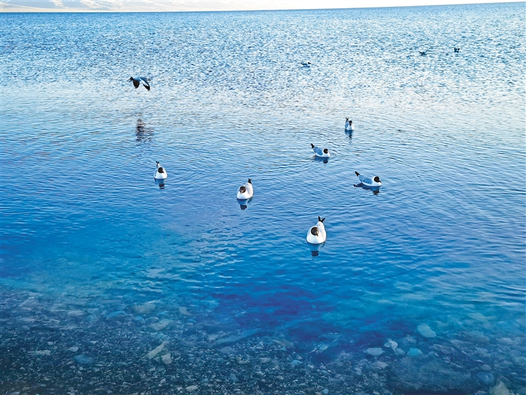 圖為納木錯(cuò)湖面上的棕頭鷗。