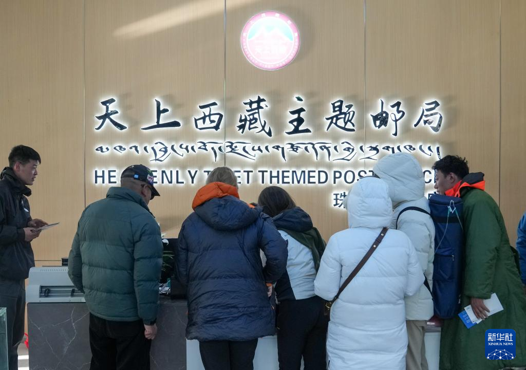 游客在位于珠峰游客大本營的郵局排隊(duì)購買明信片(5月24日攝)。