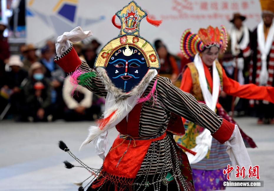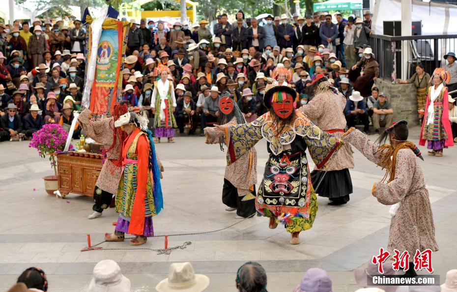 6月12日,藏戲藝人在拉薩市宗角祿康公園表演。從6月9日起,拉薩2024年“藏戲演出季”啟幕。布達(dá)拉宮腳下的宗角祿康公園,5支民間藏戲團(tuán)隊(duì)表演的傳統(tǒng)藏戲劇目,吸引當(dāng)?shù)孛癖姾陀慰颓皝?lái)觀看。李林 攝