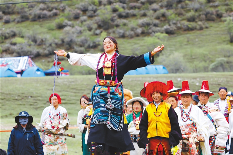 恰拉山以北的林周縣境內(nèi),處處是一片湖光山色交相輝映、風吹草低見牛羊的美景,熱振國家森林公園、旁多水庫、生態(tài)長廊阿堆溝等旅游景點集中在北部三鄉(xiāng)。“繽紛四季·多彩林周”活動在林周縣唐古鄉(xiāng)藏雄村舉辦。從拉薩出發(fā),驅車170公里,翻越海拔5000多米的恰拉山。一路上,古柏環(huán)繞,云霧繚繞,漫山遍野的杜鵑花競相綻放,宛如進入了世外桃源。