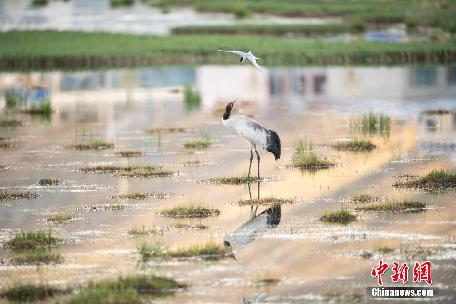 6月12日,西藏那曲市申扎縣一只黑頸鶴在濕地里覓食。申扎縣,平均海拔超過4500米,是黑頸鶴在中國的主要繁殖地之一。每年4月到6月,成群的黑頸鶴會來到這里,筑巢、孵化、養(yǎng)育下一代。近年來,為了保護這些珍貴的生靈,申扎縣采取了一系列措施,設立了監(jiān)測站,對黑頸鶴的棲息地進行24小時監(jiān)控,確保它們的繁殖不受干擾。黑頸鶴是國家一級保護動物,也是世界上唯一一種生長、繁殖在高原的鶴類。貢嘎來松 攝