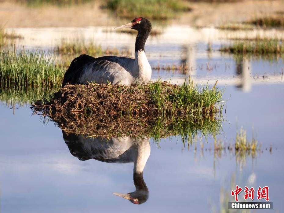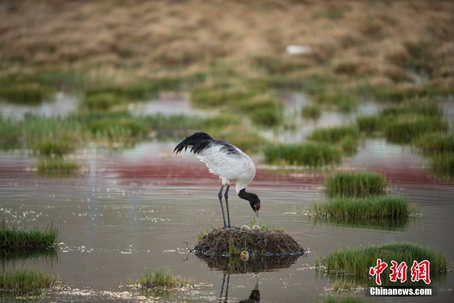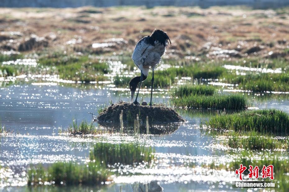 6月12日,西藏那曲市申扎縣濕地里一只黑頸鶴正準備孵蛋。申扎縣,平均海拔超過4500米,是黑頸鶴在中國的主要繁殖地之一。每年4月到6月,成群的黑頸鶴會來到這里,筑巢、孵化、養(yǎng)育下一代。近年來,為了保護這些珍貴的生靈,申扎縣采取了一系列措施,設立了監(jiān)測站,對黑頸鶴的棲息地進行24小時監(jiān)控,確保它們的繁殖不受干擾。黑頸鶴是國家一級保護動物,也是世界上唯一一種生長、繁殖在高原的鶴類。貢嘎來松 攝