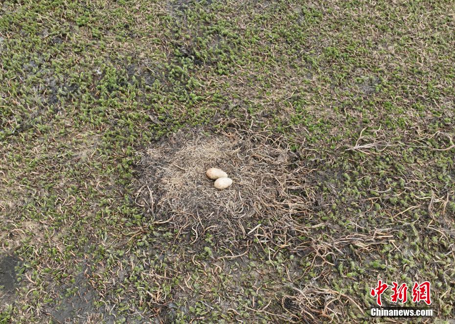 6月12日,西藏那曲市申扎縣濕地里的黑頸鶴蛋。申扎縣,平均海拔超過4500米,是黑頸鶴在中國的主要繁殖地之一。每年4月到6月,成群的黑頸鶴會來到這里,筑巢、孵化、養(yǎng)育下一代。近年來,為了保護這些珍貴的生靈,申扎縣采取了一系列措施,設立了監(jiān)測站,對黑頸鶴的棲息地進行24小時監(jiān)控,確保它們的繁殖不受干擾。黑頸鶴是國家一級保護動物,也是世界上唯一一種生長、繁殖在高原的鶴類。貢確 攝(無人機照片)